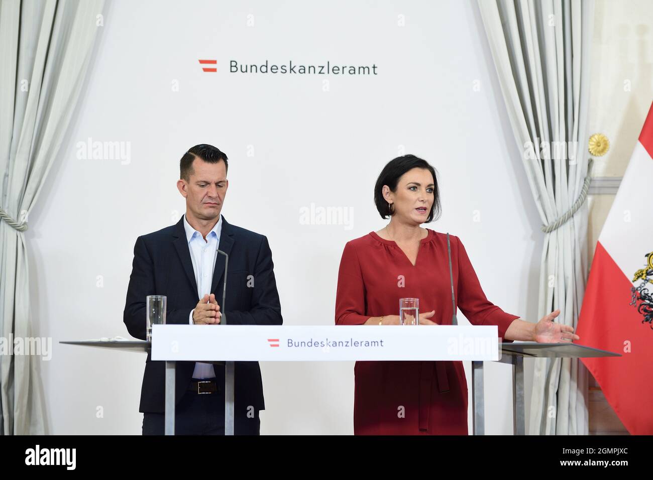 Vienna Austria 20th Sep 2021 Press Statements With Tourism Minister Elisabeth Kostinger R Health Minister Wolfgang Muckstein L About Regulations In Winter Tourism Stock Photo Alamy